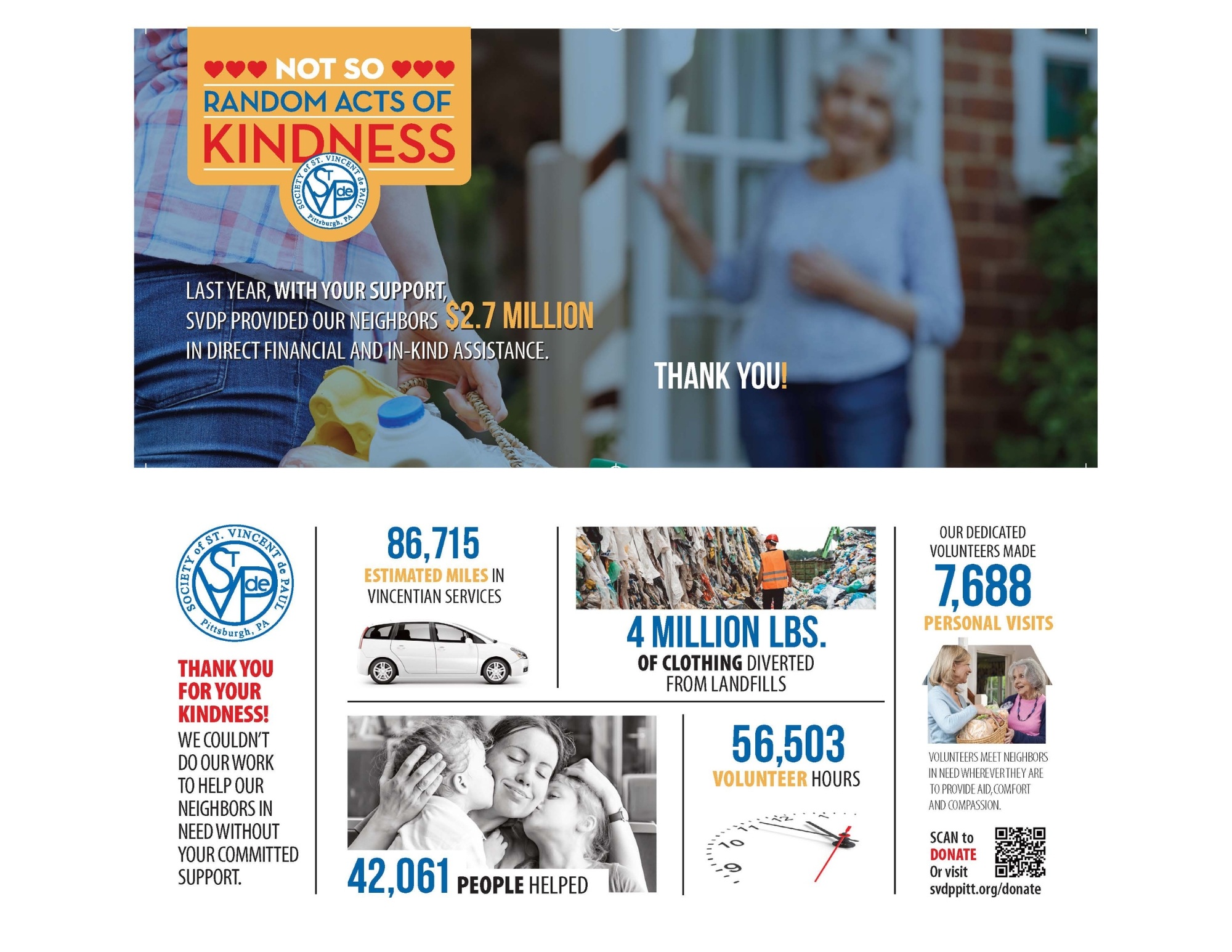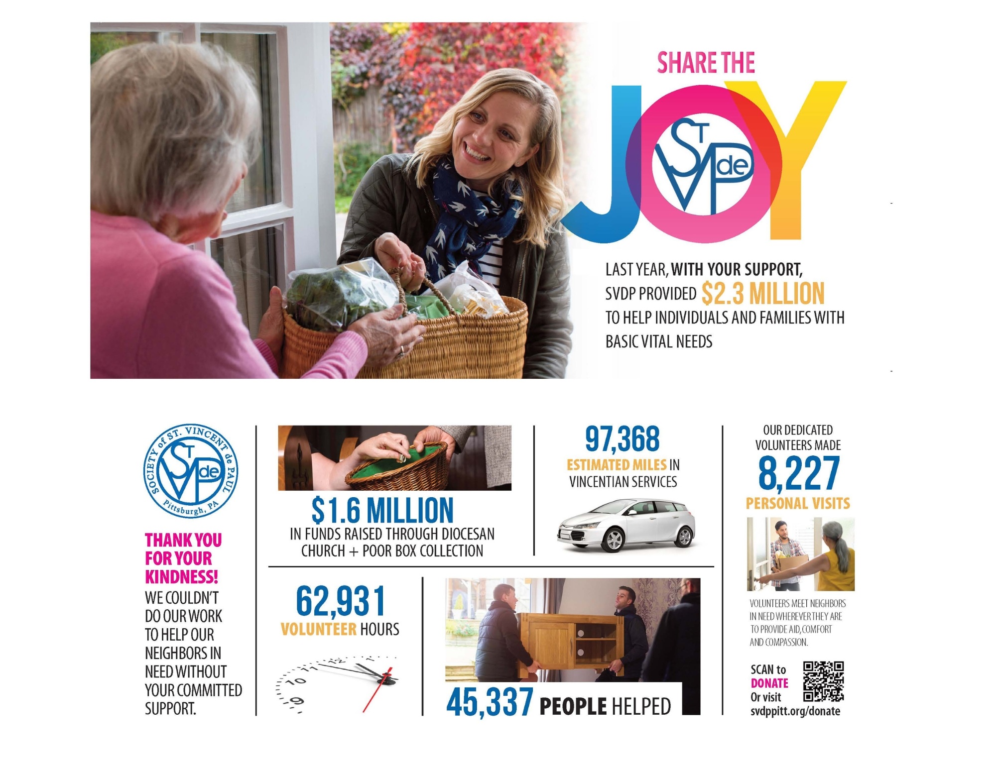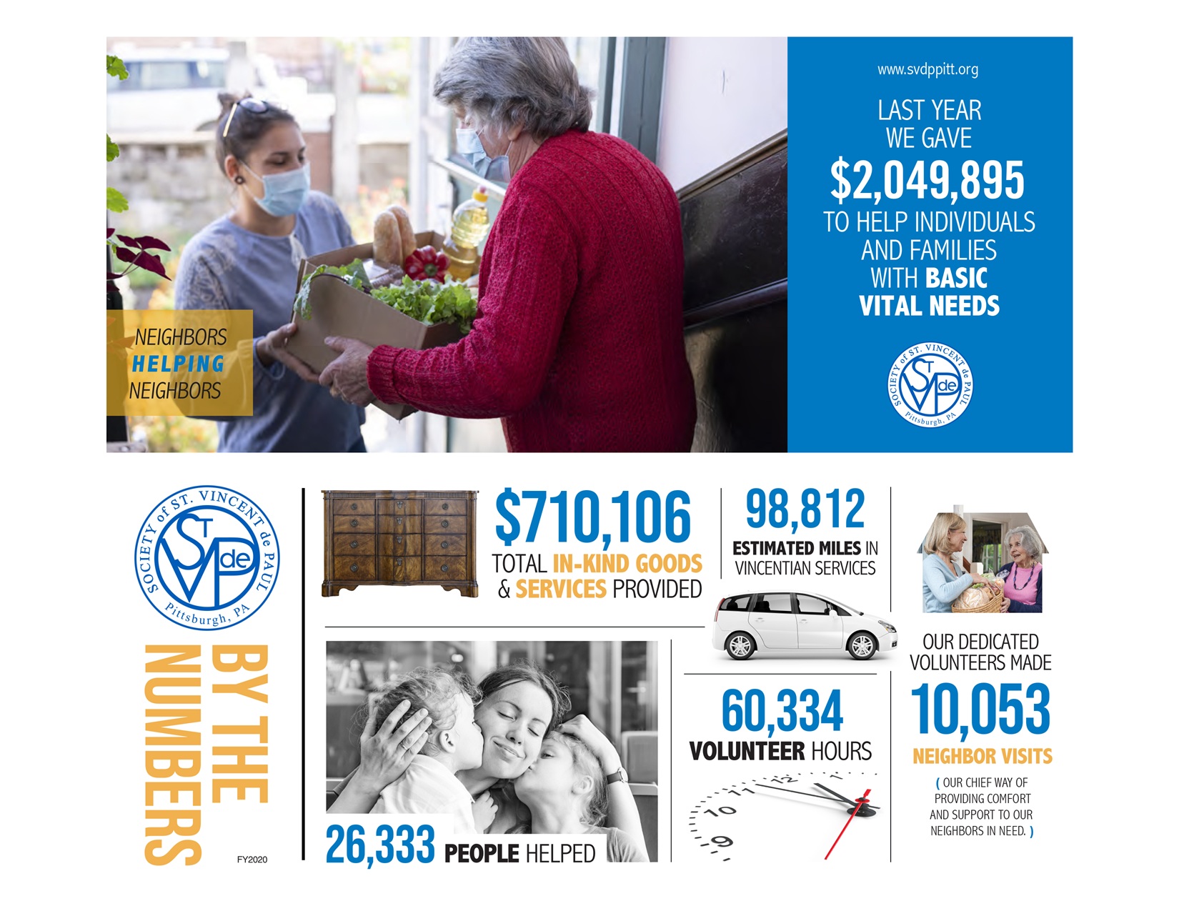 The Society of St. Vincent de Paul Council of Pittsburgh makes a powerful impact across our community by providing direct assistance to individuals and families facing hardship. Through local conferences and initiatives like our Regional Emergency Direct Assistance Fund (REDAF), we’ve been able to respond quickly to critical needs, offering emergency aid that helps stabilize lives. Our By-The-Numbers reports highlight the scale of this impact, detailing how we've helped neighbors-in-need throughout the region. These numbers reflect our commitment to ensuring that vulnerable community members receive the support they need to recover from life's toughest challenges.